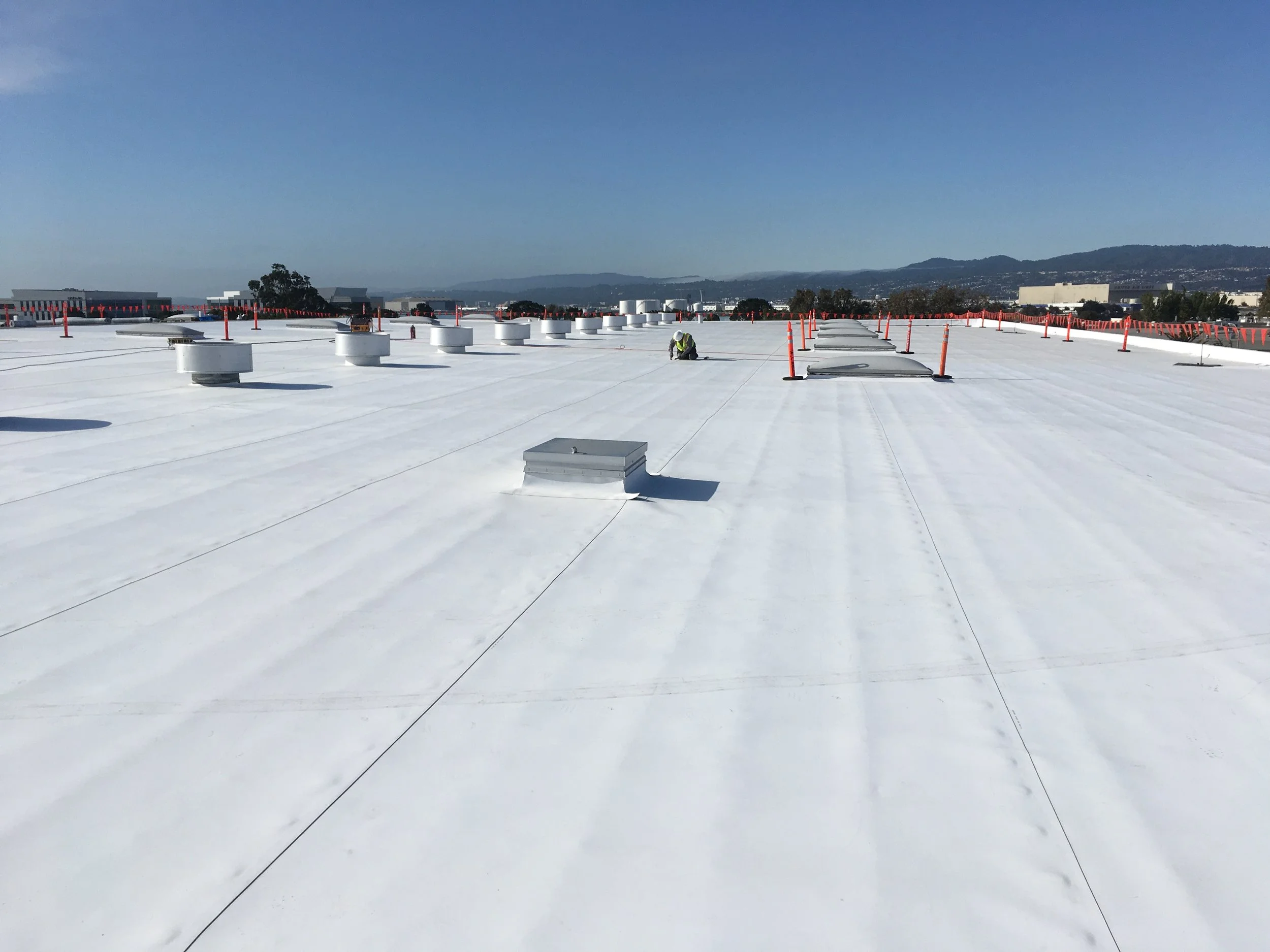 TPO (Thermoplastic Polyolefin) is California’s most widely used membrane roofing system, valued for its cost-effectiveness and energy efficiency. TPO reduces heating and cooling demands compared to built-up roofing. Installation options include mechanical attachment, full adhesion, or ballast with river rock or architectural stone.